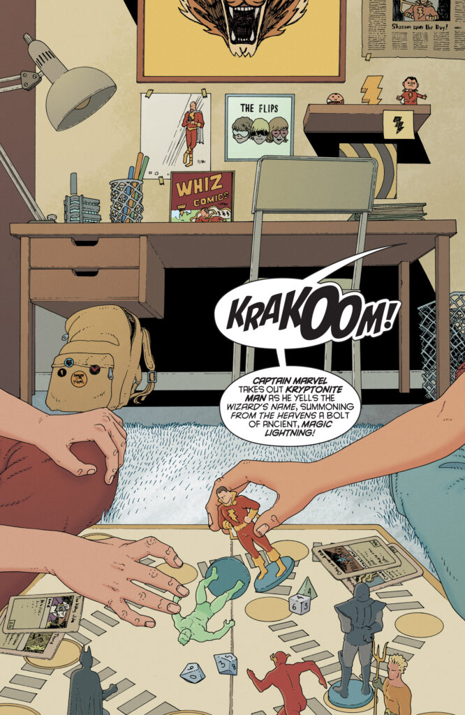 Superboy and Captain Marvel ride the rickety roller coaster (literally!) through the many-hued amusement park of motley meteoroids that is the Kryptonite Spectrum! With Superman now a bit…shorter in the tooth…the Boy of Yesterday must team up with a truly Marvelous friend in a story for the ages…for all ages! What, exactly, is Nostalgia Springs? And what do Toyman and Sivana have to do with it? Find out in this great adventure–chock-full of crayons, Kryptonites, and a cruise through comics chronology!