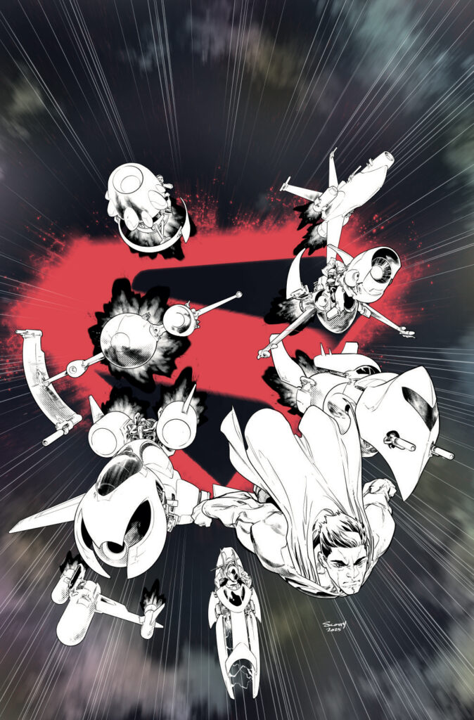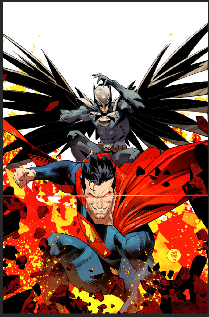 Superman finds himself at the forefront of a bold new age of heroes in the Absolute Universe, but he quickly learns that he wasn’t the world’s first super-powered protector. Enter Hawkman, who has a few tips for the new kid, whether he wants to hear them or not!