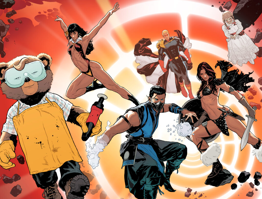 Unexpected fighters from beyond the DC Universe enter the arena! Wait… What? WHO?! As the remaining champions in the K.O. tournament prepare for the final rounds, they discover that there isn’t enough Omega energy left to crown the winner a King Omega. To have any hope of stopping Darkseid, they’ll need to engage in combat with the champions of other worlds beyond our own including Annabelle, Homelander, Sub-Zero, and more! This shocking, star-studded crossover sets the stage for the final chapters of the epic DC K.O. event and features matchups you never imagined possible. The ultimate battle is only beginning!