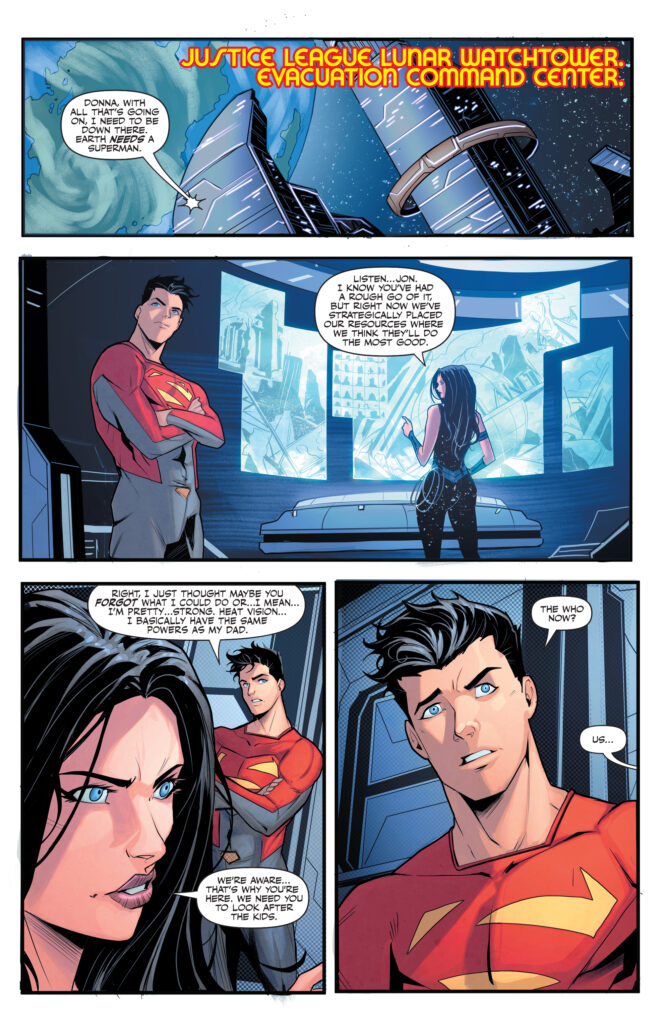 Jon Kent always wanted to be a Titan when he grew up, but now that he’s working alongside them in the effort to evacuate Earth, he didn’t think he’d be stuck babysitting young sidekicks! When the kids sneak off to enter the fray and stop Granny Goodness, Jon will have to show these young heroes the ropes so they can save the day and prove there’s no age requirement to being a superhero—and you won’t want to miss the SHOCKING finale!